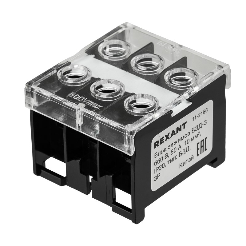 Блок зажимов клеммный БЗД 3х-полюсный 10,0 мм2 50A на DIN-рейку REXANT