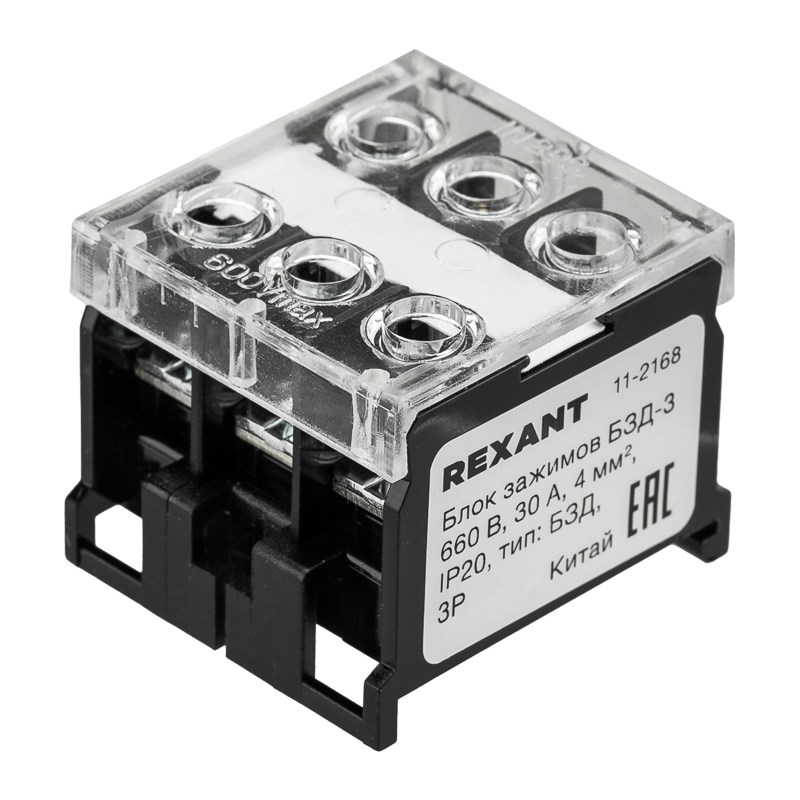 Блок зажимов клеммный БЗД 3х-полюсный 4,0 мм2 30A на DIN-рейку REXANT