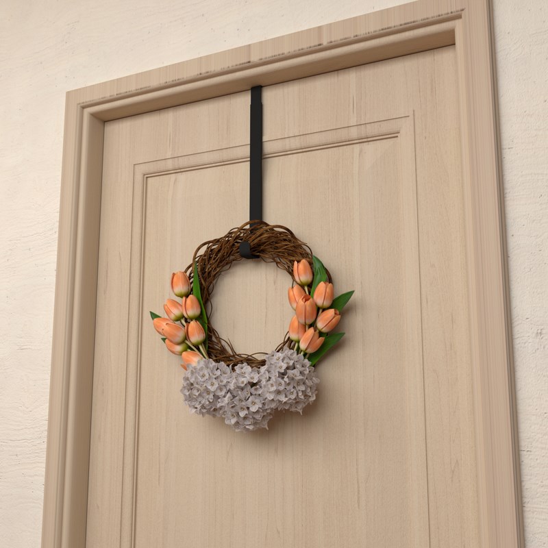 Регулируемая конструкция позволяет без труда изменять длину держателя для идеального расположения венка на двери.
