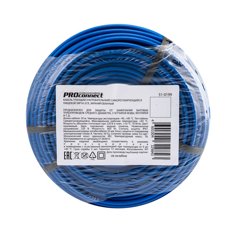 Кабель греющий (нагревательный) саморегулирующийся пищевой SRP16-2CR, экранированный, 16Вт/м, 0,5мм2/100м, бухта 50м PROconnect