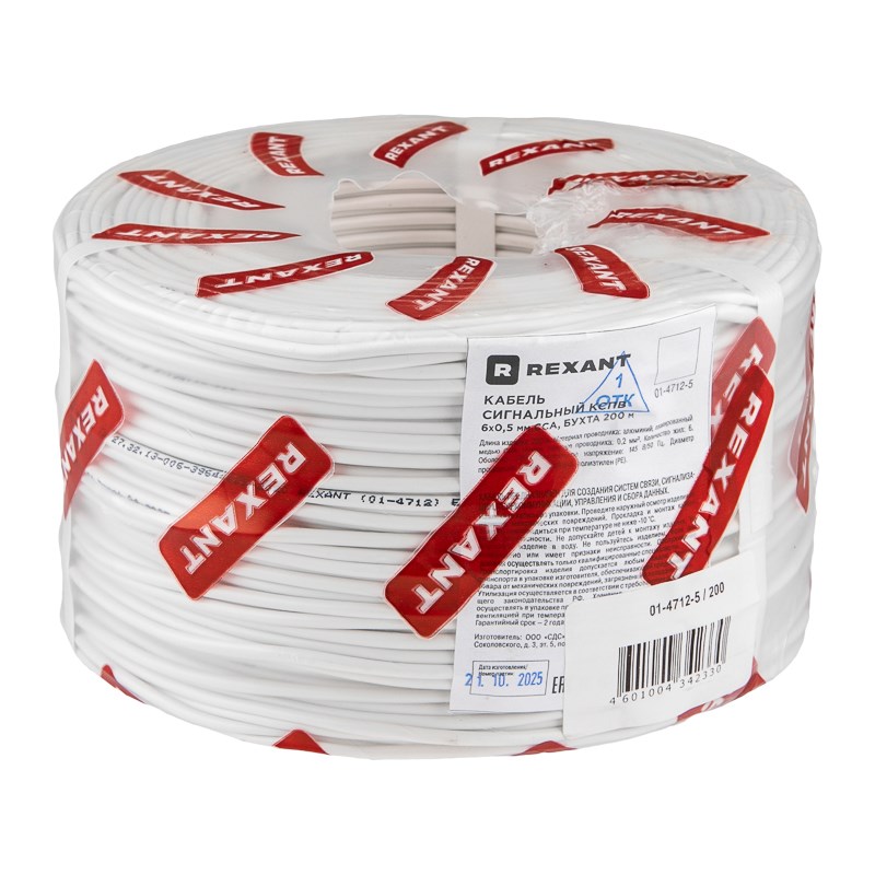 Кабель сигнальный КСПВ 6х0,5мм ССА, бухта 200м REXANT