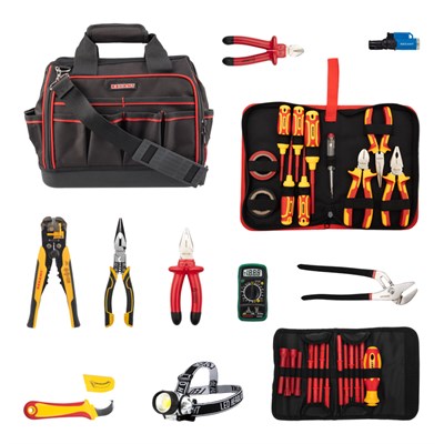 Набор инструментов электрика REXANT состоит из 29 предметов и позволяет провести весь цикл электромонтажа до 1000В. Диэлектрический набор имеет все необходимые инструменты для работы с напряжением до 1000В.