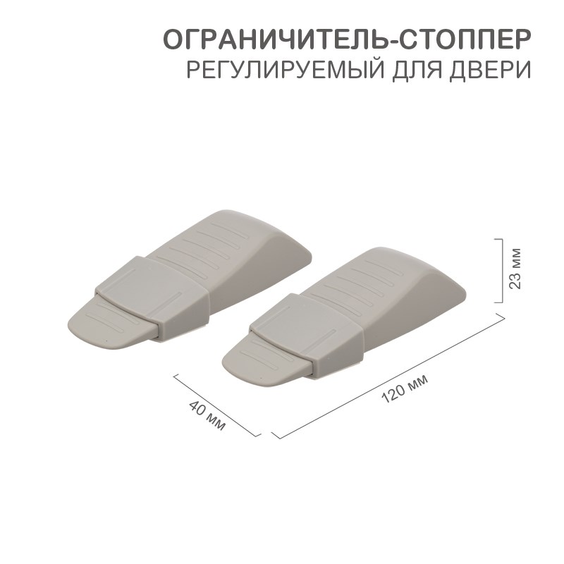 Представляет собой элемент из термопластичной резины (TPR), который достаточно просто установить на пол возле двери. В комплекте поставляются специальные держатели для хранения стопперов на двери или стене, когда нет необходимости в их использовании.
