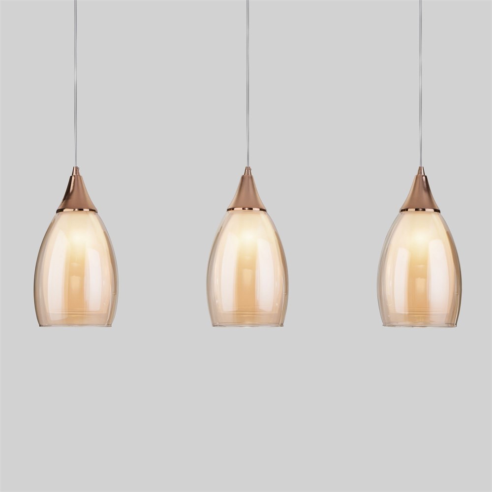 Подвесной светильник со стеклянными плафонами 50285/3 в золотом цвете создаст качественное акцентное освещение квартиры, кафе или магазина. Источником света является сменная лампа с максимальной мощностью 15 Вт. Рекомендуемая площадь освещения 8 кв. м.