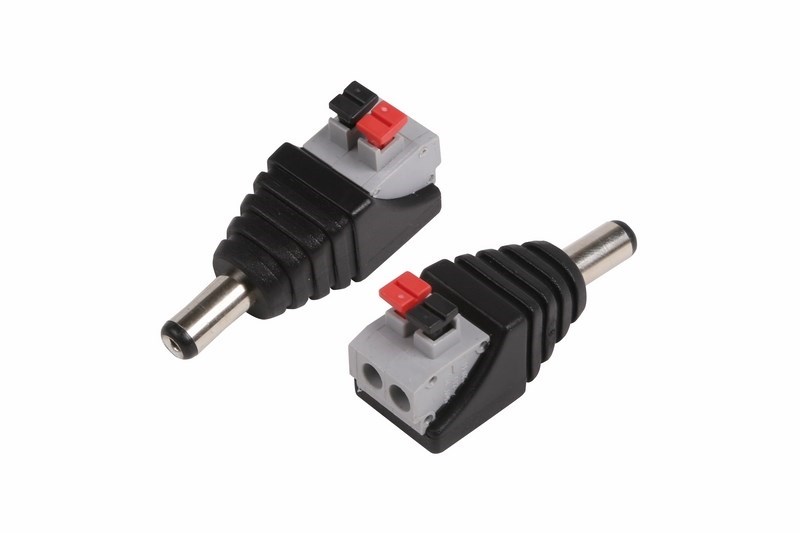 РАЗЪЁМ питания штекер 2.1х5.5 с быстрозажимной колодкой (блистер) REXANT предназначен для оперативного подключения питания различного оборудования (систем видеонаблюдения, питания зарядных или других бытовых устройств) к источнику питания постоянного тока 12/24В (DC). Такой двухконтактный штекер монтируется на кабель без использования какого-либо инструмента методом подпружиненных зажимов. Этот способ крепления значительно проще и быстрее, чем пайка, но его надежность и качество соединения остаются на неизменно высоком уровне. Никелевое покрытие контактов повышает долговечность разъема и позволяет применять его в условиях климатических перепадов. Разъем прямой формы имеет размеры 2.1х5.5мм. Корпус изготовлен из ударопрочного пластика. Монтаж возможно осуществлять с разными типами кабелей: ШВВП, комбинированный провод или витая пара. Диапазон рабочих температур от -30℃ до +50℃. Джек часто используется для замены вышедших из строя разъемов шнура и подходит к стандартным резервным источникам питания (DC).