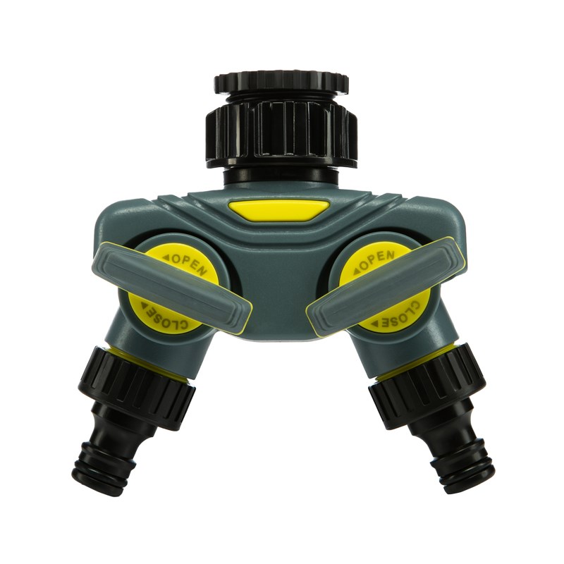 Разветвитель предназначен для подключения двух шлангов через коннекторы к крану с внешней резьбой. Обеспечивает независимое управление двумя отдельными поливочными линиями, что позволяет адаптировать полив под различные потребности растений и зон.