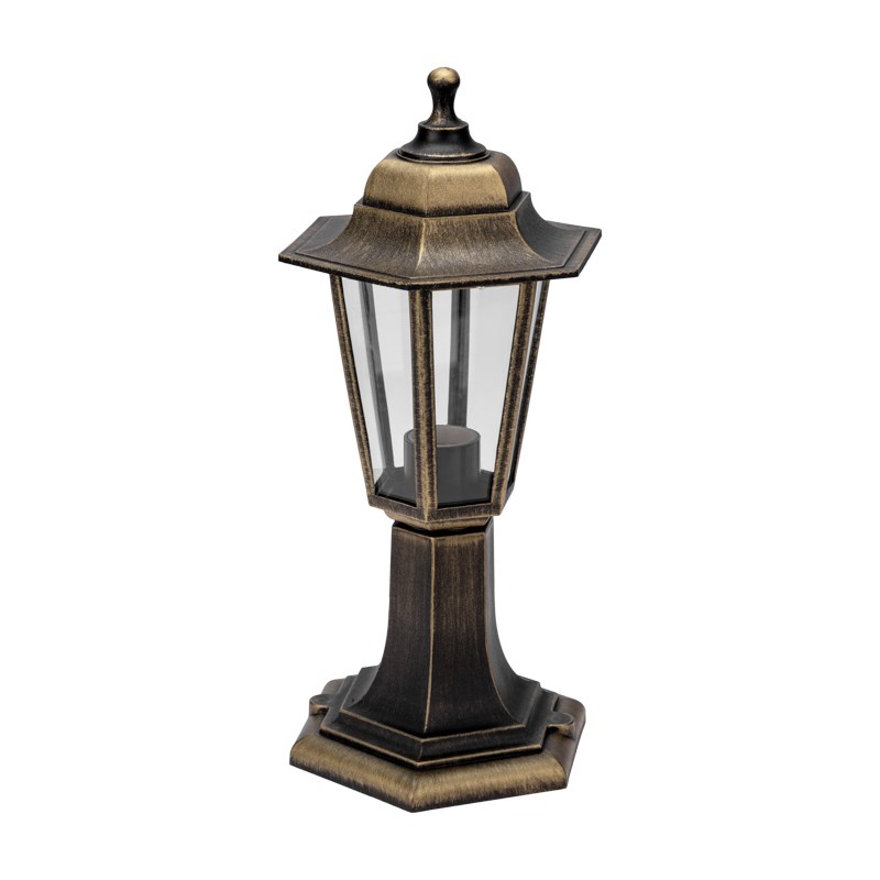 Светильник садово-парковый НТУ 06-60-001 У1 "Оскар 1", столб малый, черный под бронзу, стекло прозрачное, шестигранный, под лампу Е27 LAMPER