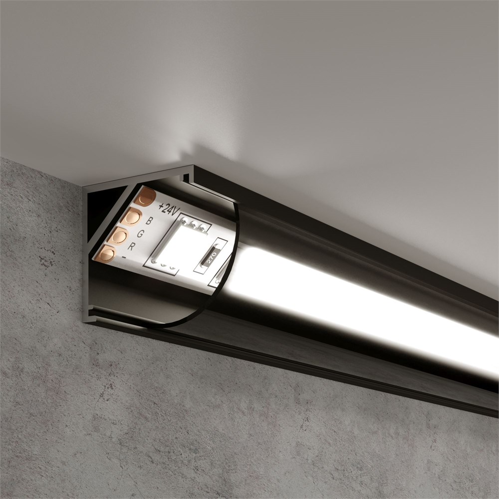 Профиль можно встраивать в пол, потолок или стены, создавая уникальные световые инсталляции. Пространство во внутренней полости профиля-основания используется в качестве кабель-канала для провода низковольтного электрооборудования.